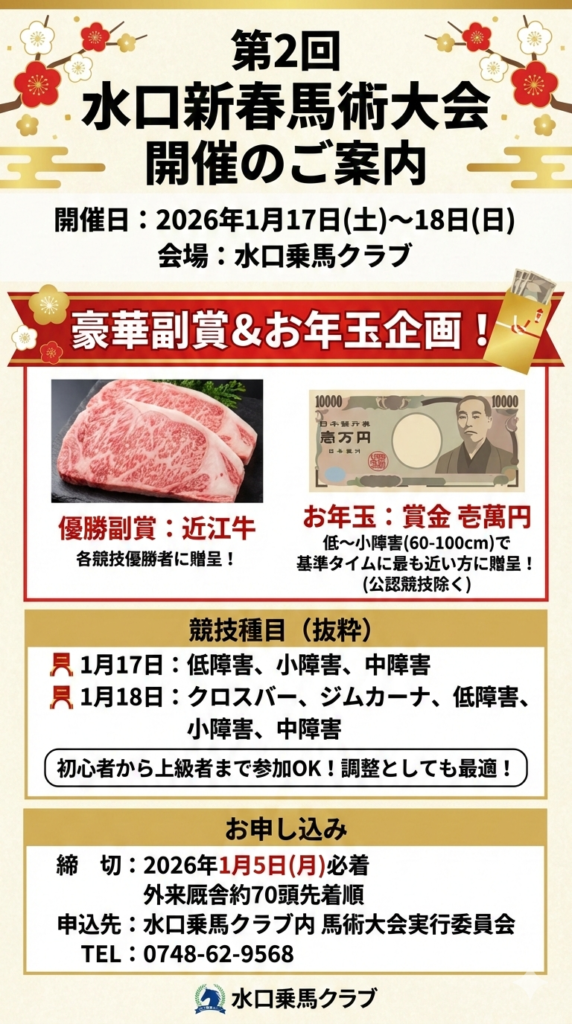 【2026年1月開催】第2回 水口新春馬術大会 実施要項のお知らせ