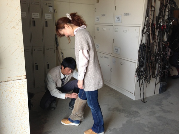 まずはレンタル馬具を装着して、乗馬スタイルに。