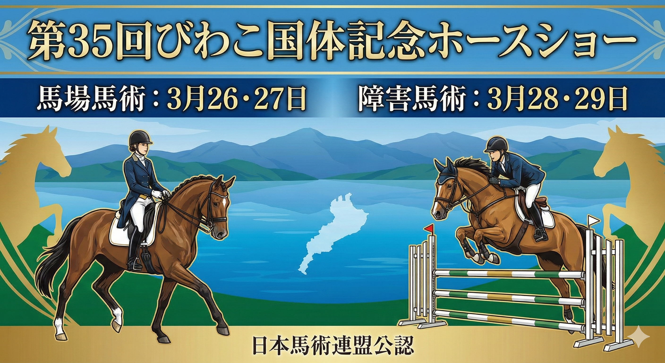 3月の水口乗馬クラブにて、「第35回びわこ国体記念ホースショー」を開催いたします!